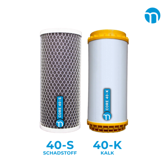 Die Filterkombination besteht aus einem Schadstoff-Filter 40-S, einem Feinstoff-Filter 40-F, sowie einem Kalkreduktionsfilter 40-K.
